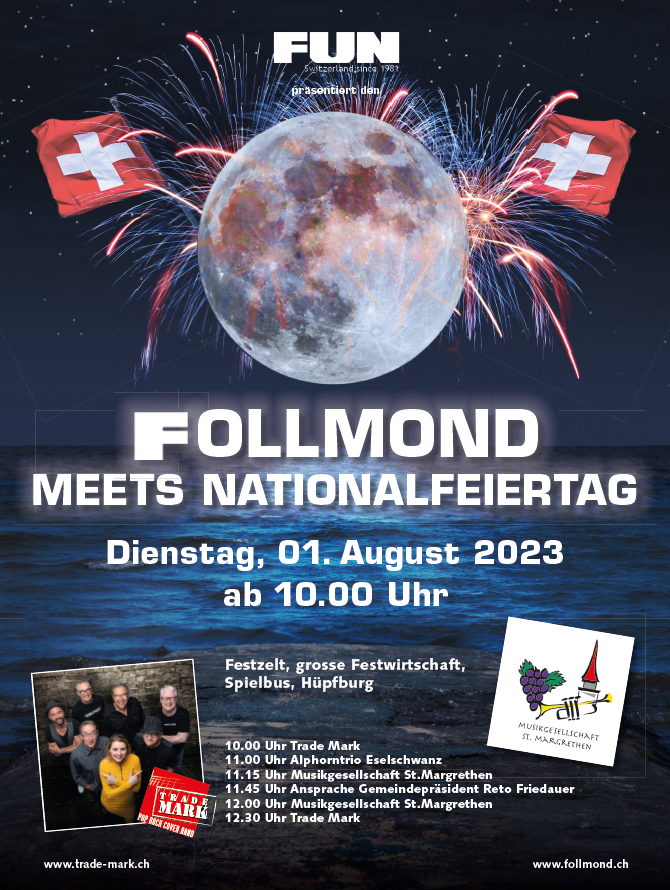 Seit 15 Jahren findet dieser Anlass statt und hat sich in der Zwischenzeit zu einem wichtigen Anlass in St. Margrethen entwickelt. Trade Mark freuts sehr, einmal mehr diese Party musikalisch bereichern zu dürfen. Also, wir sehen uns am Freitag, 12.8.2022, ab 19 Uhr im Park in St. Margrethen, wenn es heisst: «Let’s Rock The Follmond»!